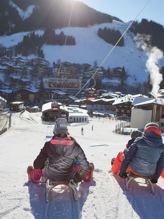 Nach dem Skifahren, nach dem Snowboarden oder wenn Sie einfach einmal gemeinsam mit Ihrer Familie und den Freunden nach einer geselligen Wintersport-Alternative suchen: Rodeln kombiniert Fun & Action perfekt mit Bewegung und winterlichem Sportvergnügen. Junge und junggebliebene Gäste stürzen sich mit großer Begeisterung downhill in die nächste Rodelbahn und lassen sich den Fahrtwind um die Nase wehen. Rodeln in Saalbach Hinterglemm zählt ohne Frage zu den lustigsten und zugleich aufregendsten Aktivitäten für Groß und Klein rund um das Bachgut. Einige der schönsten Rodelbahnen in der Region befinden sich in unmittelbarer Nähe unseres Resorts mit Private Spa und laden zu actionreichen Nachmittagen und sogar Abenden ein.