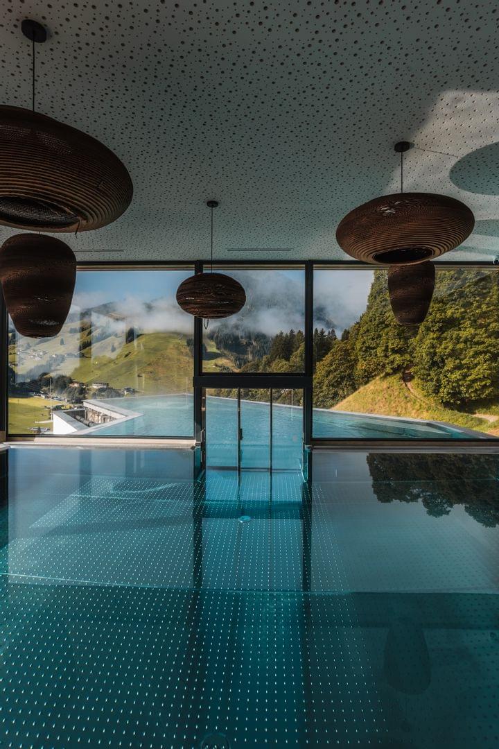 • Innenbecken und Aussicht auf die Berge