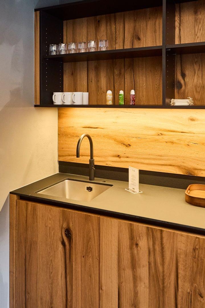 Nach dem Training steht eine kleine Fitnessbar zur Selbstbedienung für Erfrischungen und kurze Pausen zwischen den Einheiten zur Verfügung.
