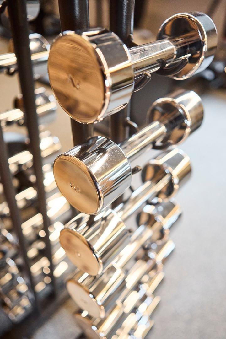 • Fitnessraum mit Geräten und Gewichten