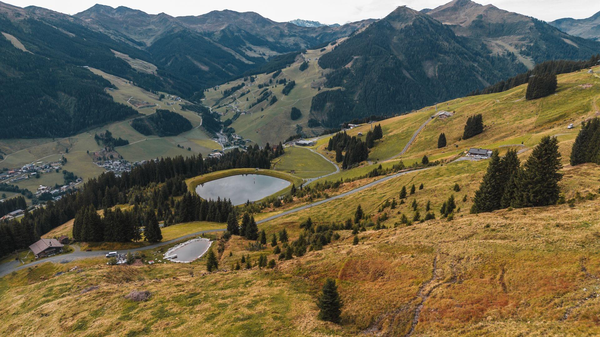 Ausblick auf den Speicherteich und das Glemmtal, Herbstliche Stimmung
