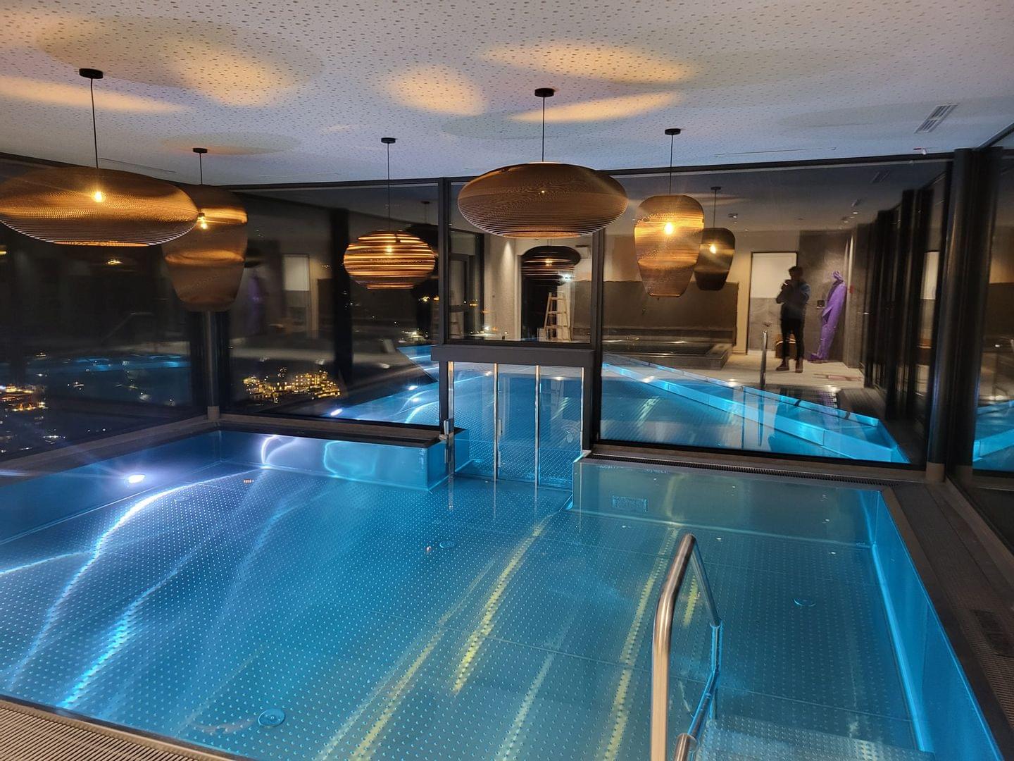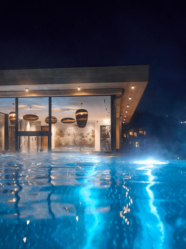 • Evening atmosphere at the infinity pool in the bathhouse.